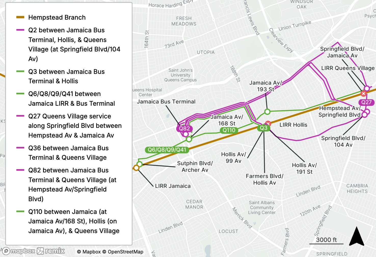 MTA buses will accept LIRR tickets for travel from Queens Village and Hollis to Jamaica. View a map of your route options.